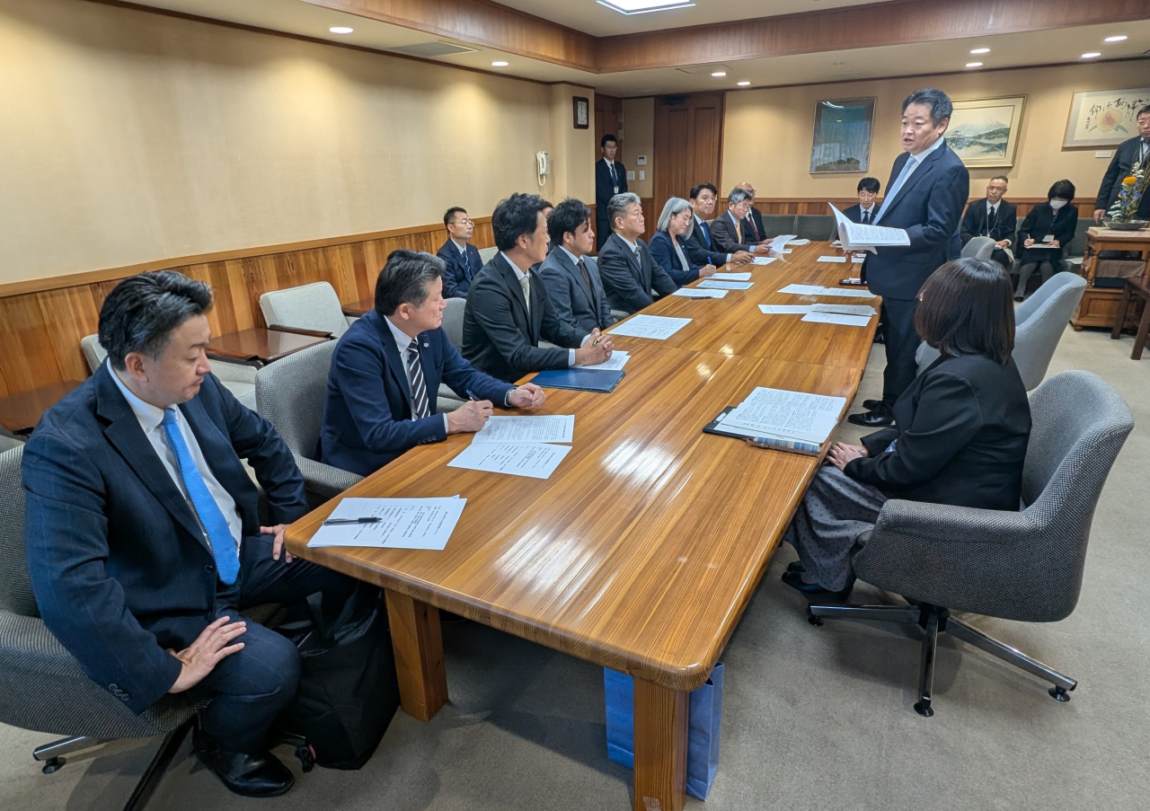 2月25日(木)に県内経済4団体に対し、8テーマ21項目に及ぶ要請書を提出しました。